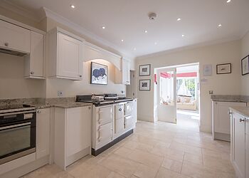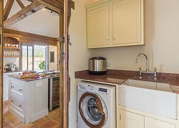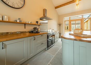 - Woodburning stove and farmhouse kitchen